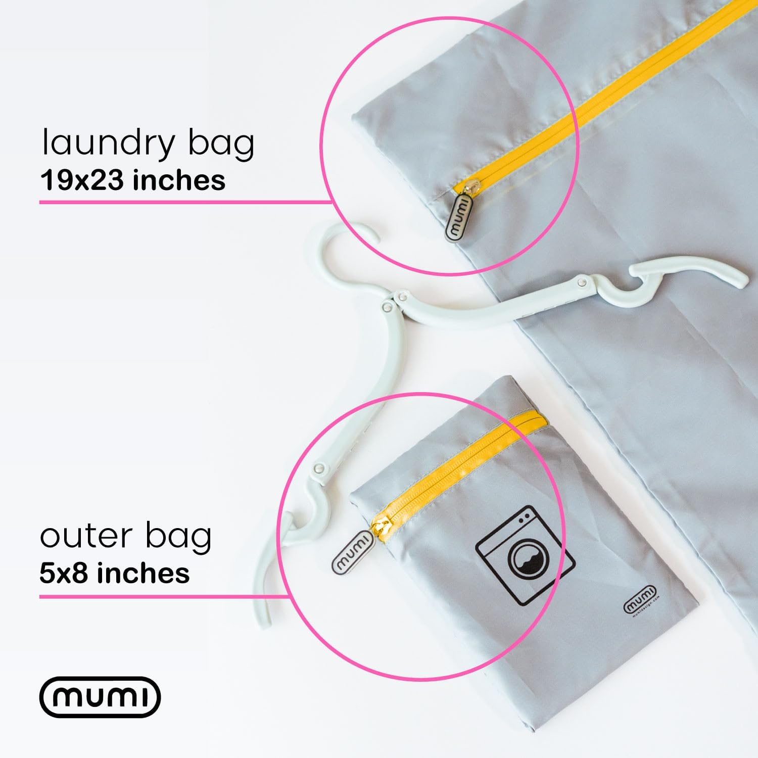 MUMI Travel Laundry Bag – Moisture & Smell-Proof Wash Bag with Folding Hanger & Outer Pouch | Large Washable Bags for Suitcase, Gym & Packing | Clothes Organizer for Trips & Storage - Black