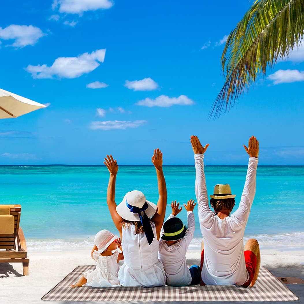 Beach Blanket Extra Large Picnic Blanket Sand Free Waterproof Outdoor Indoor Blanket Lightweight Easy Fold Handy Mat Portable Beach Mat for Camping Hiking Travel Park Grass
