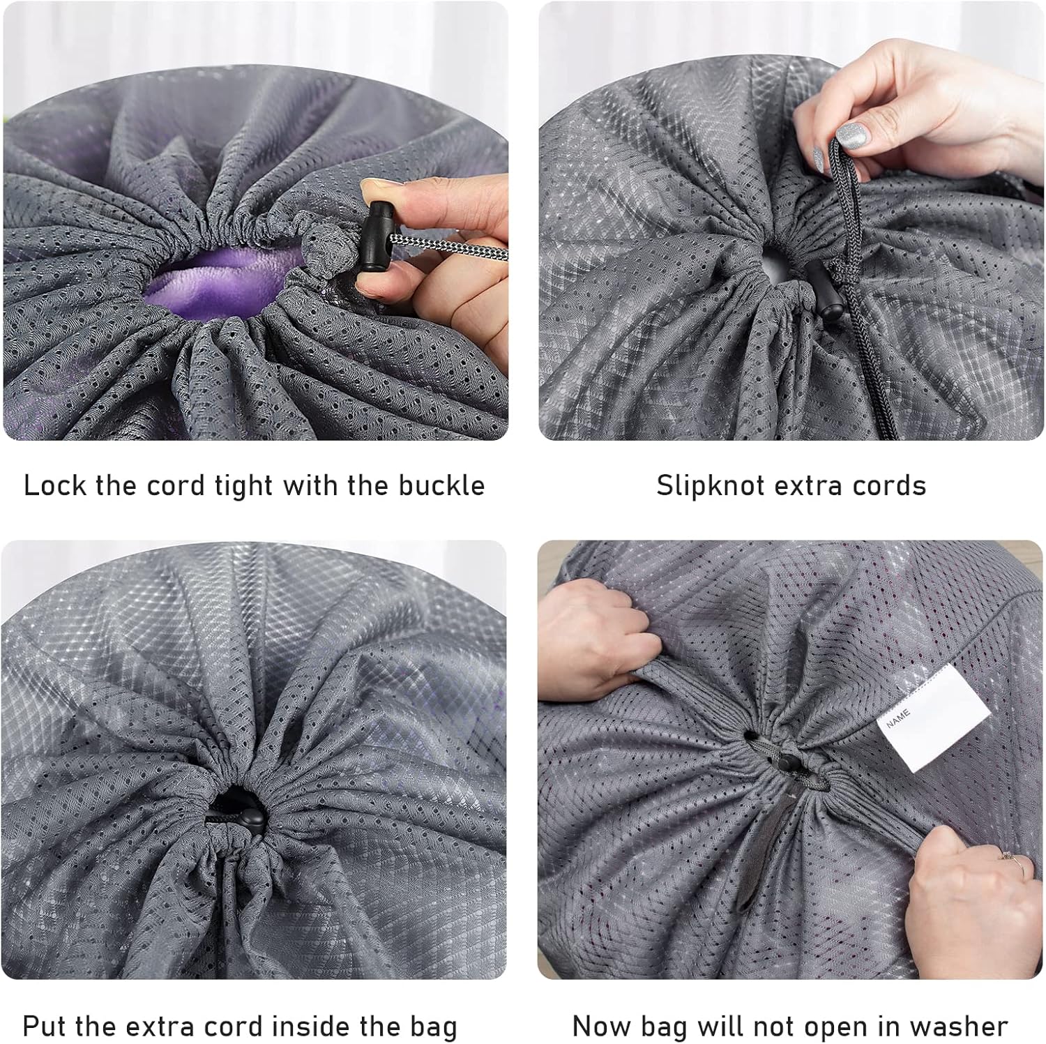 - 【Drawstring Locking Closure】The mesh bag has an locking drawstring closure to prevent spill. If you use them as wash bags, please tuck toggle inside the bag to avoid the drawstring loosen in washing machine.