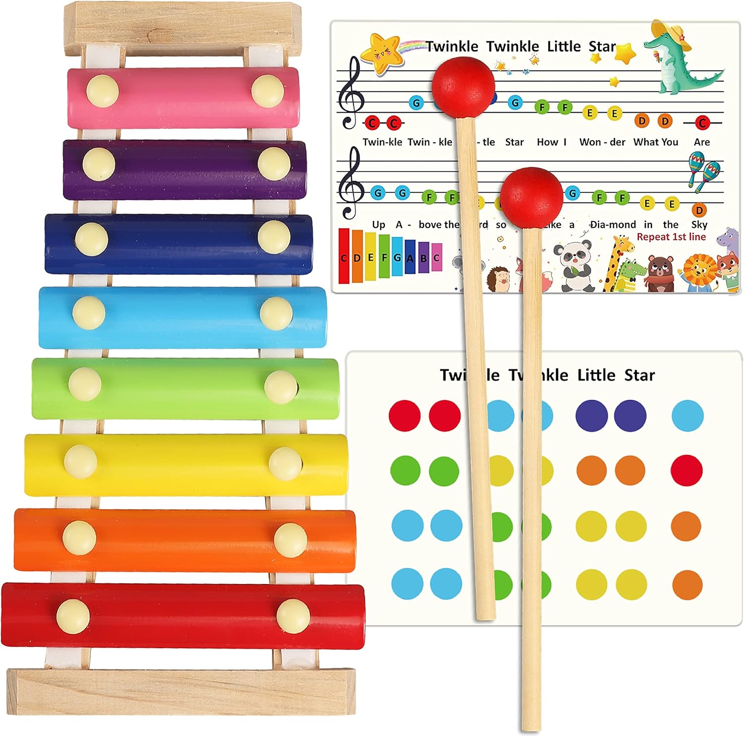 - 🎵High Quality Xylophone: The xylophone instruments made of high quality natural wood,Safe to use, the wooden xylophone toy is smooth and the mallet is designed for children to hold easily.perfect musical toys for kids ,xylophone toys for toddlers ,educational toys