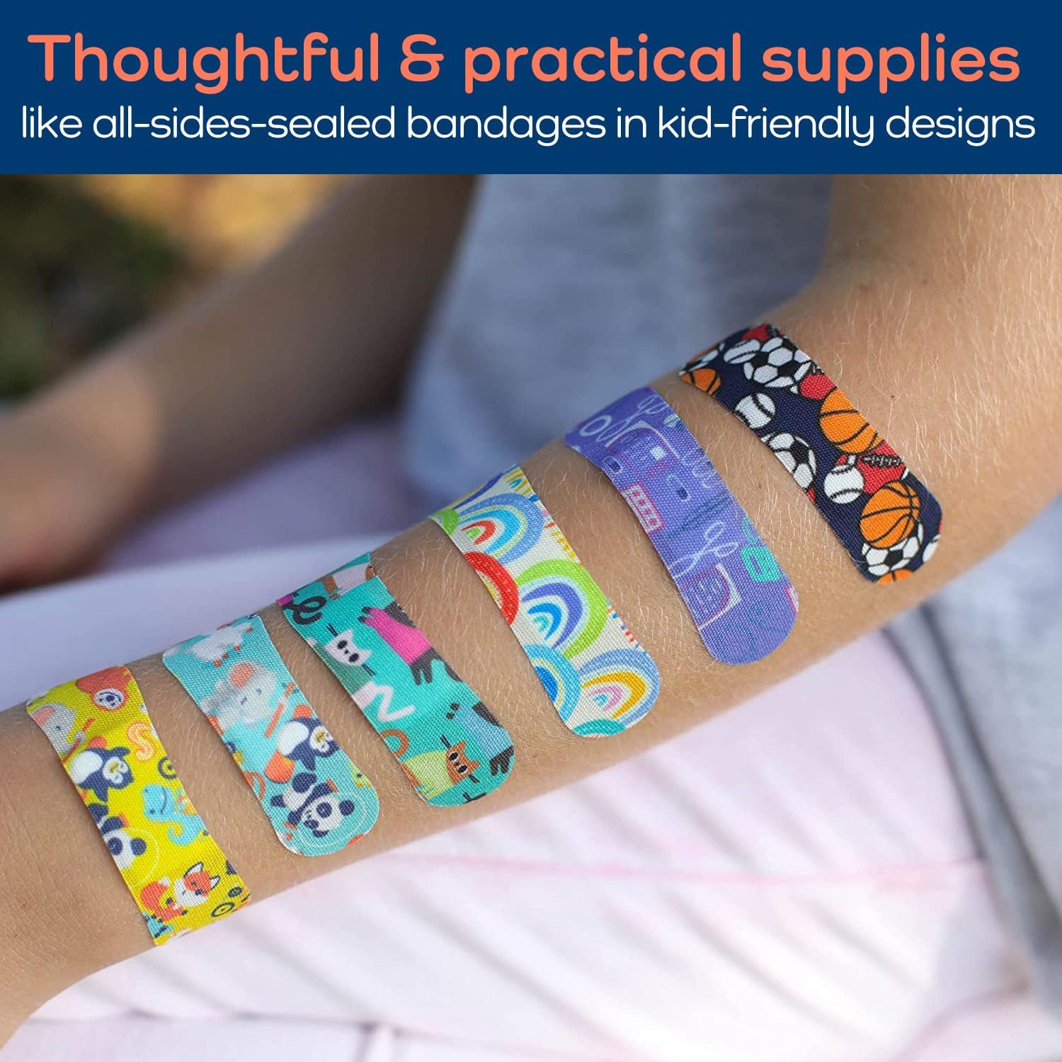 KeepGoing Large Home First Aid Kit for Kids – 270 Pc. for Car, Home, Dorm, & Boat with Latex-Free Bandages – 10 x 7 x 3.5 in. Travel First Aid Kit (Sunny Rainbow)