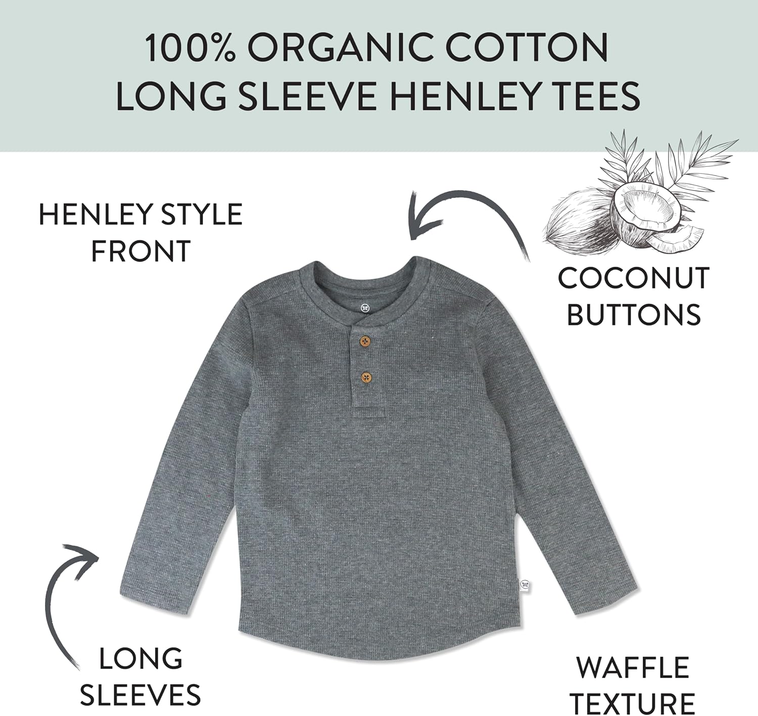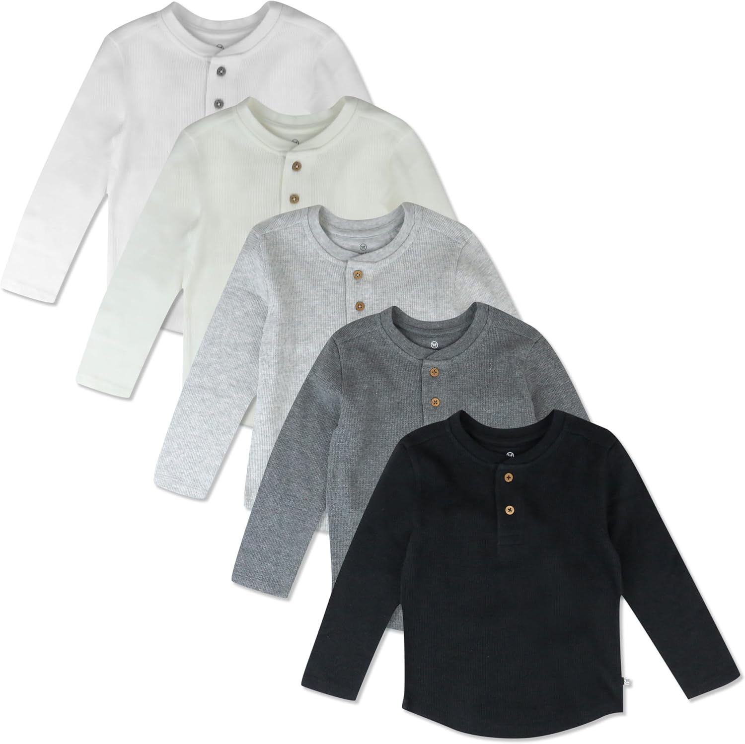 HonestBaby 5-pack Waffle Henley Long Sleeve Shirts 100% Organic Cotton for Infant Baby and Toddler Boys, Unisex