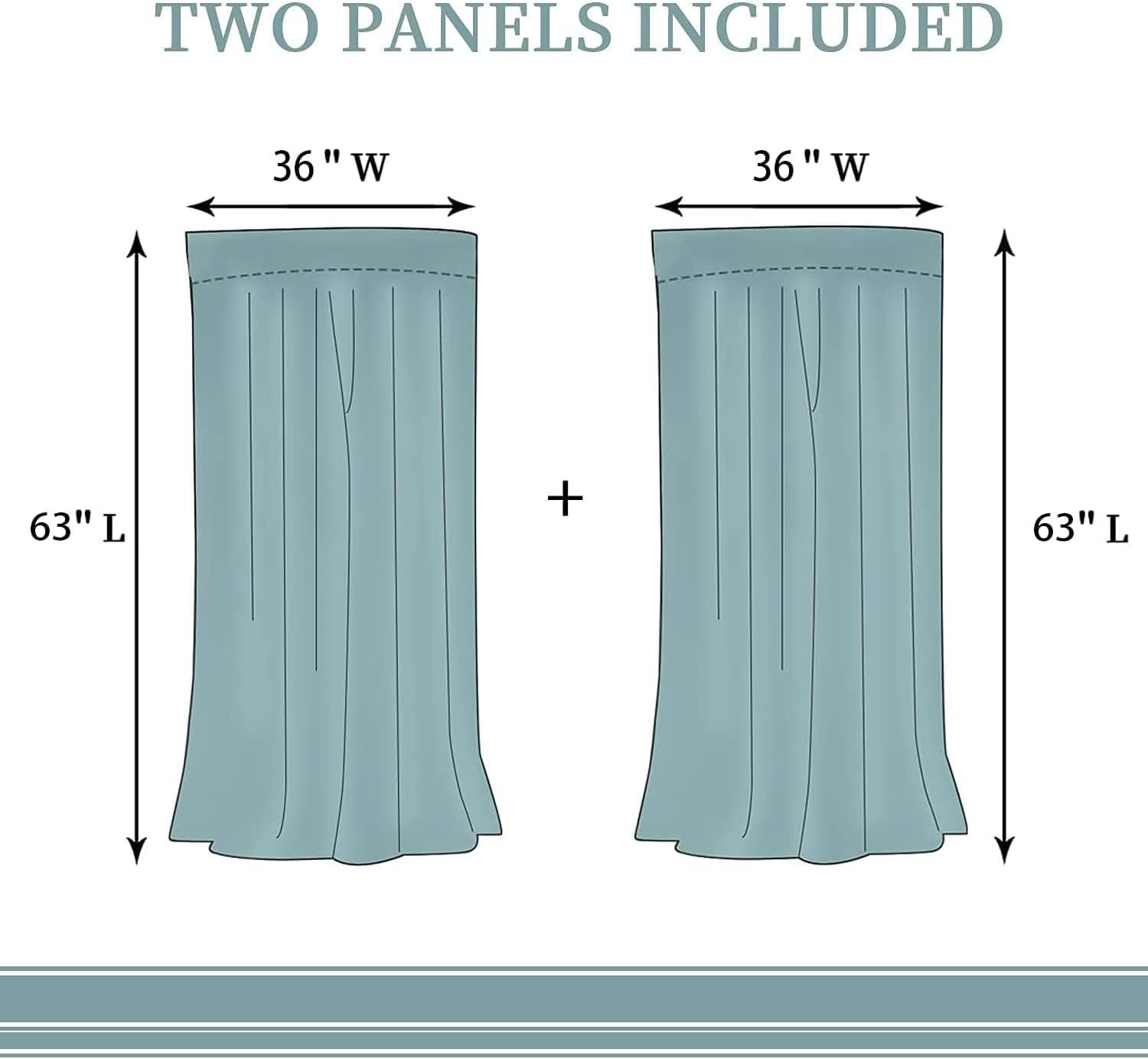 - ✿【What do you get?】: Each package contains 2 curtains, each measuring 36 "W x 63 "L. The total size of the two curtains is 72 "W x 63 "L with a 3" Grommet on top. come unpacked and ready to use.