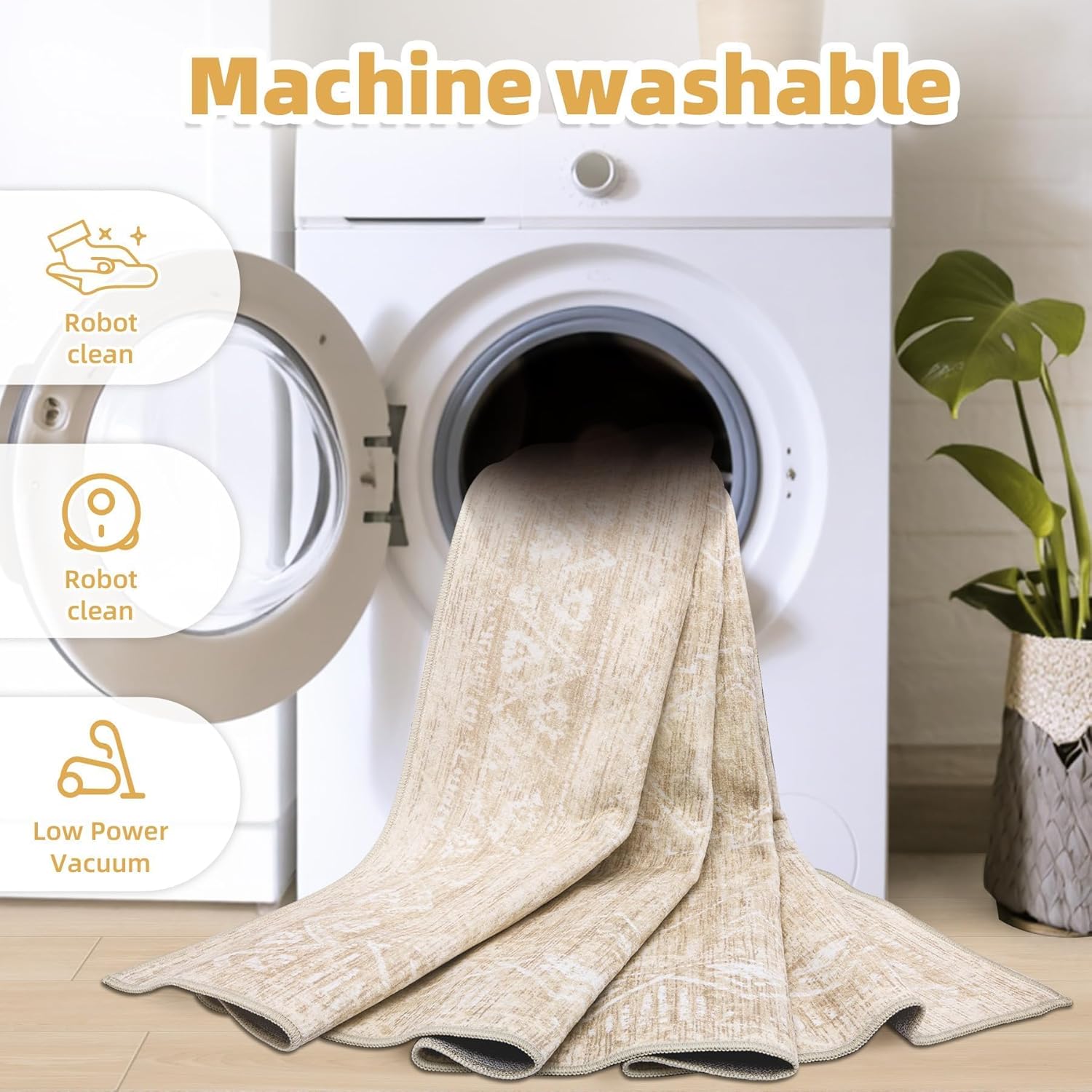 - Machine Washable Rug: Our washable rug 6x9 has stain and splash-resistant properties. Use a broom or vacuum cleaner to Clean up or hair for daily care. The rug can be washed directly in the washing machine in cold water, making cleaning a breeze.(Please remember not to use bleach!)