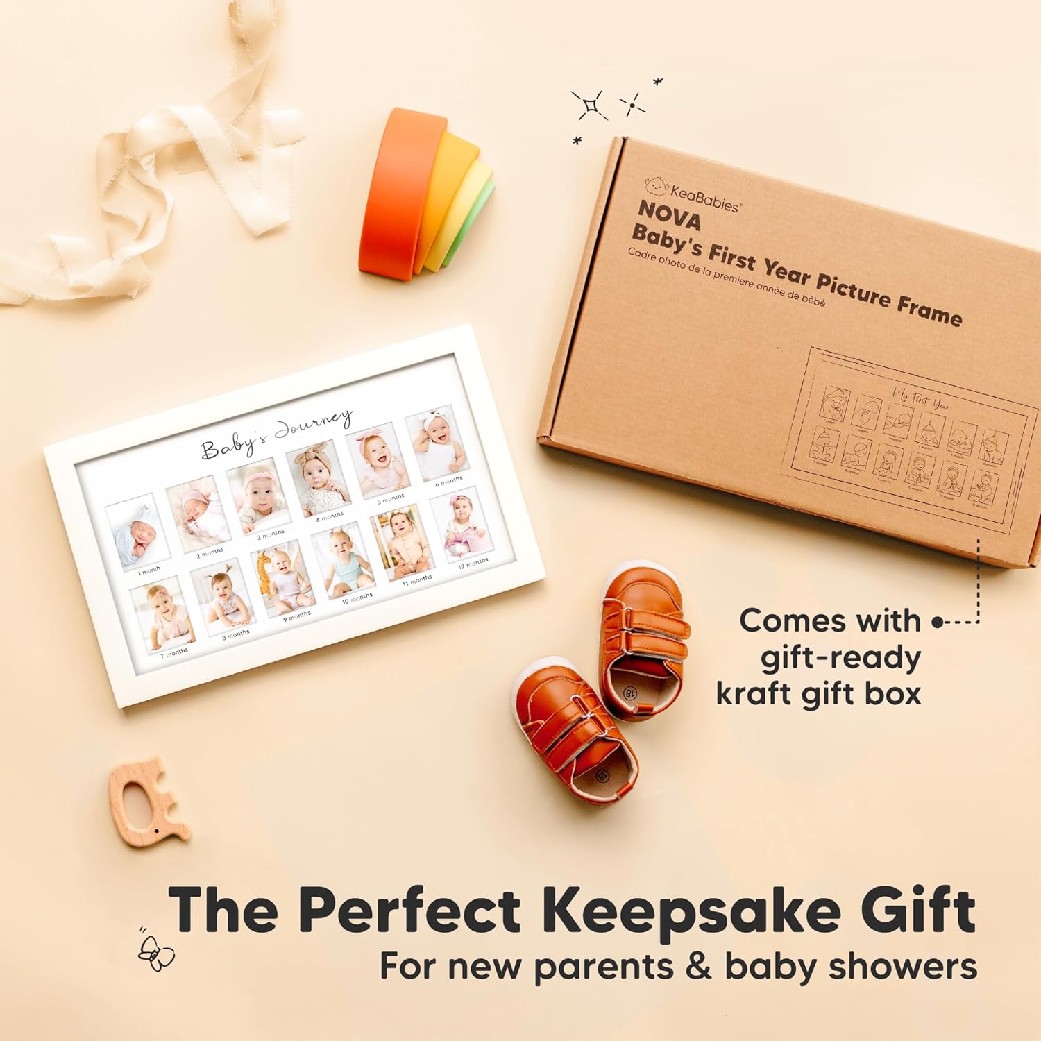 - Baby Shower Gift – Celebrate the joy of new life with KeaBabies Nova Baby My First Year Photo Frame. This newborn baby picture frame, captures precious milestone, makes a thoughtful baby registry gifts for new parents. Comes packed in kraft gift box.
