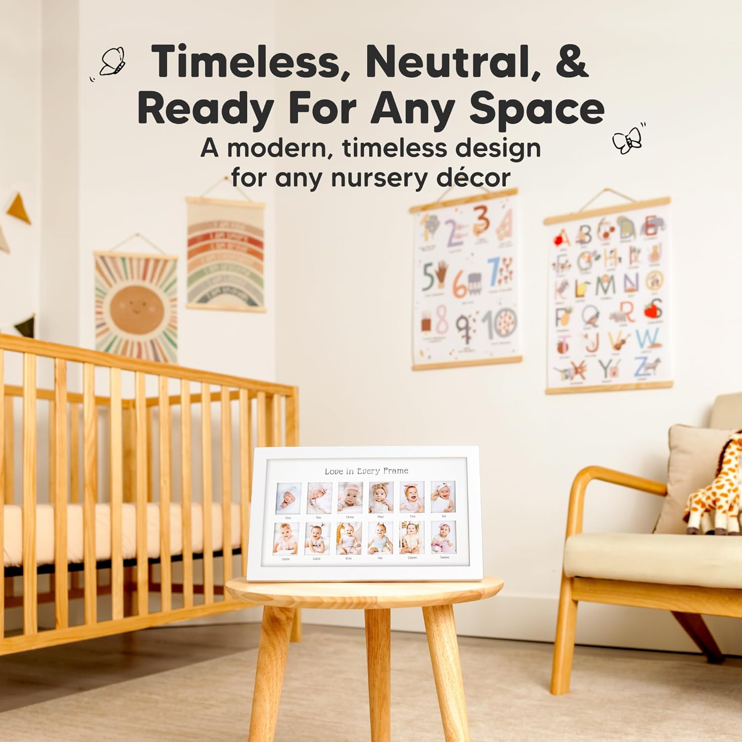 - Easy to Display - Transform any room into a memory-filled space with the Nova Baby First Year Photo Frame. Mount on the wall or display on a tabletop, this gender-neutral keepsake baby frames for photos, adapts to your style with a warm touch.