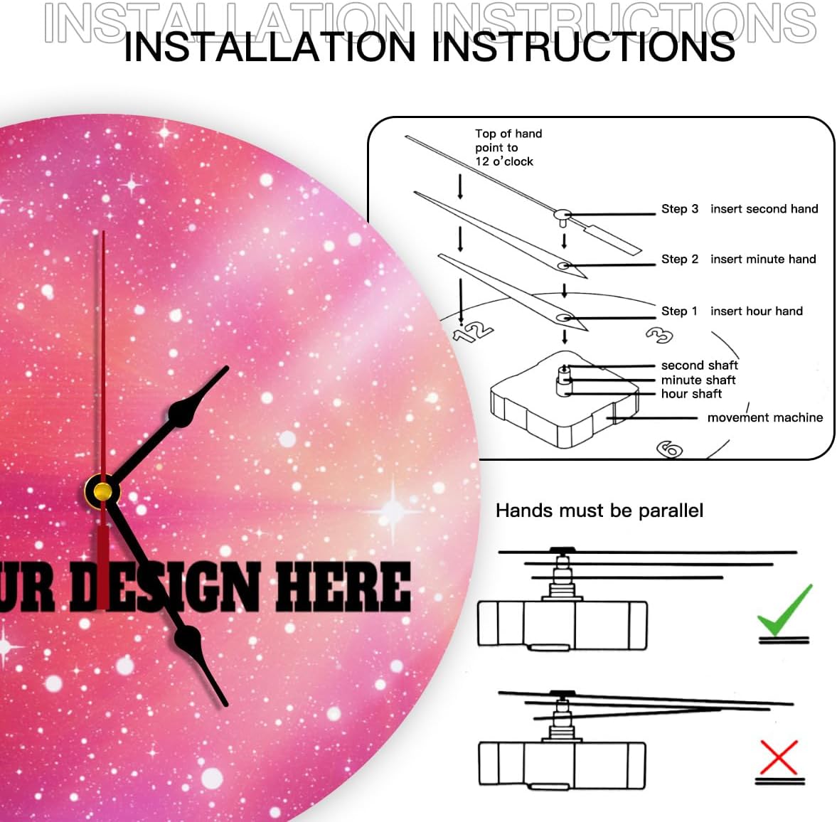 - ⏰⏰Personalized pictures clocks:Please click the“customize now“button at upper,upload your customized photo and add text.Stretch photo to fill the entire printing area.Submit high definition images for better print results.