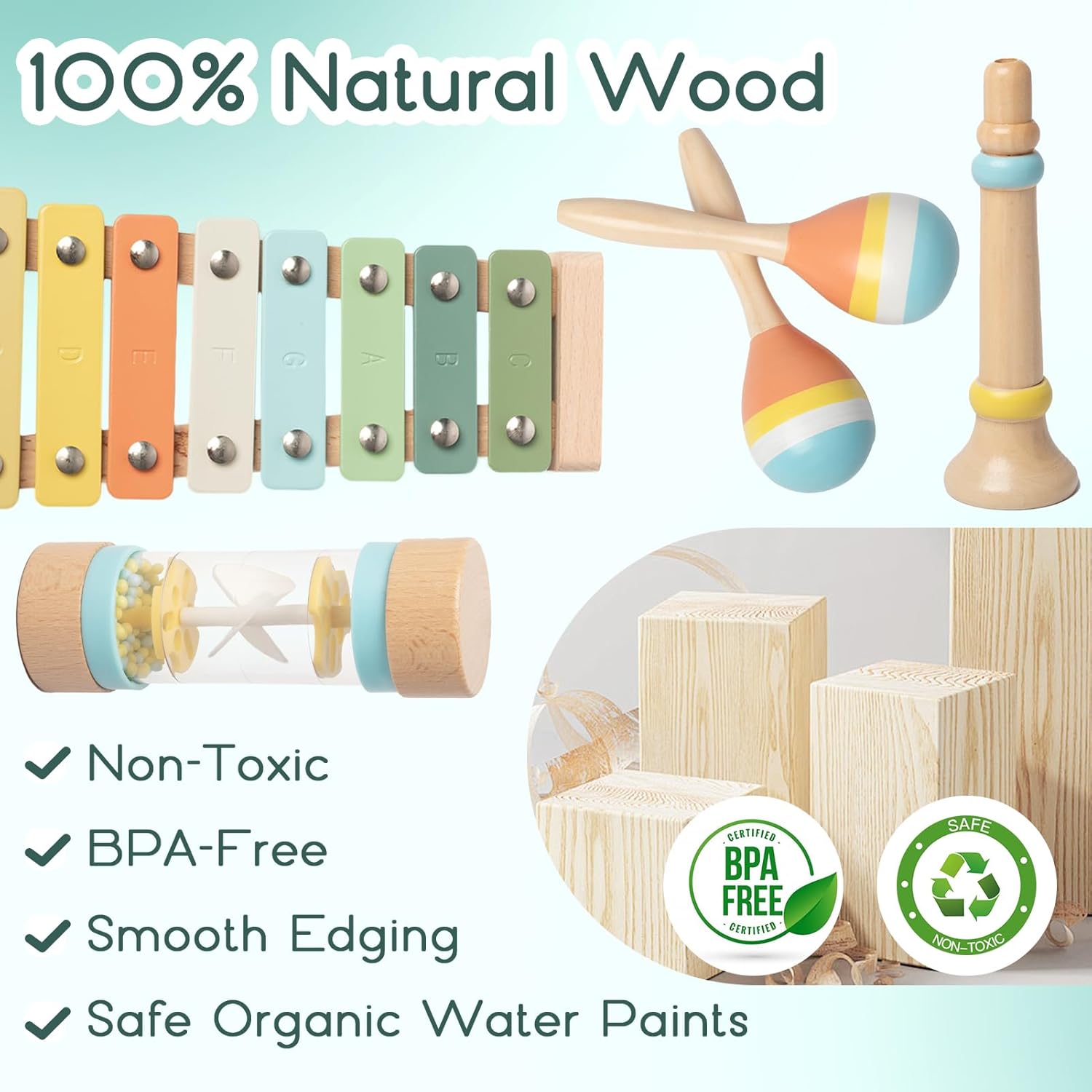 - Safe and Durable:Our montessori musical instruments are 100% BPA-free and have passed CPC/ASTM safety standards, ensuring that your little ones can explore their musical talents with safe, non-toxic materials!Crafted from 100% natural wood and finished with safe organic water paints, our instruments feature smooth edges and are designed for little hands, making them durable and delightfully tactile for endless fun