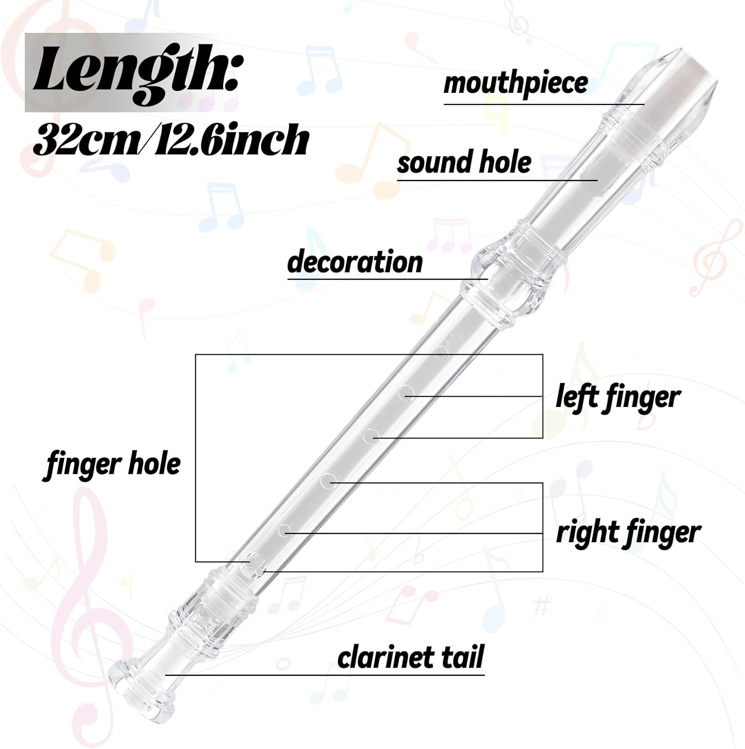 - Material: Transparent 8 holes German-style soprano recorder is made of ABS resin, which is light, not easy to be damaged and can be used for a long time