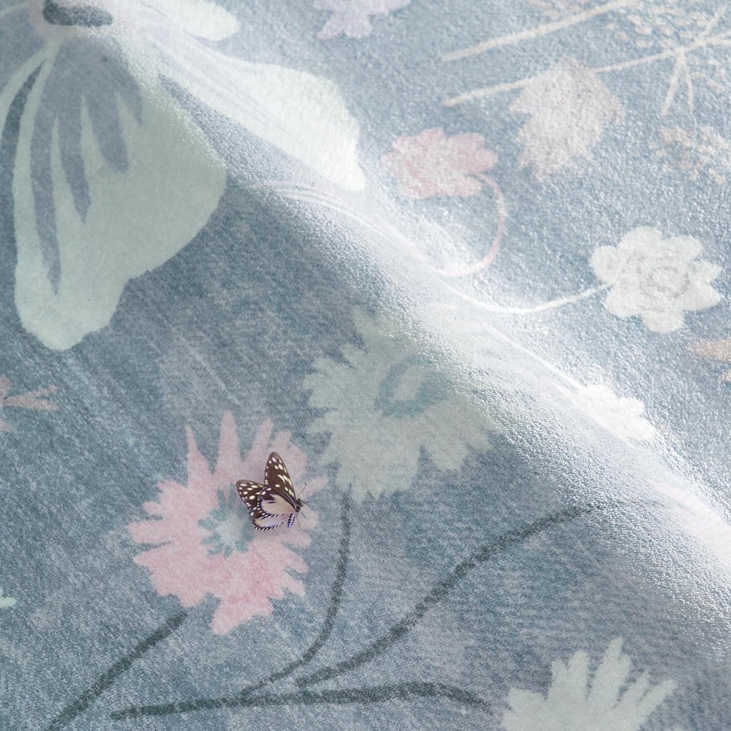 Blue 5x8 Area Rugs for Living Room Washable Soft Faux Fur Elegant Vintage Rugs Boho Floral Non Slip Stain Resistant Sound Absorbing Low Pile Carpet Rug for Bedroom Dining Room Nursery