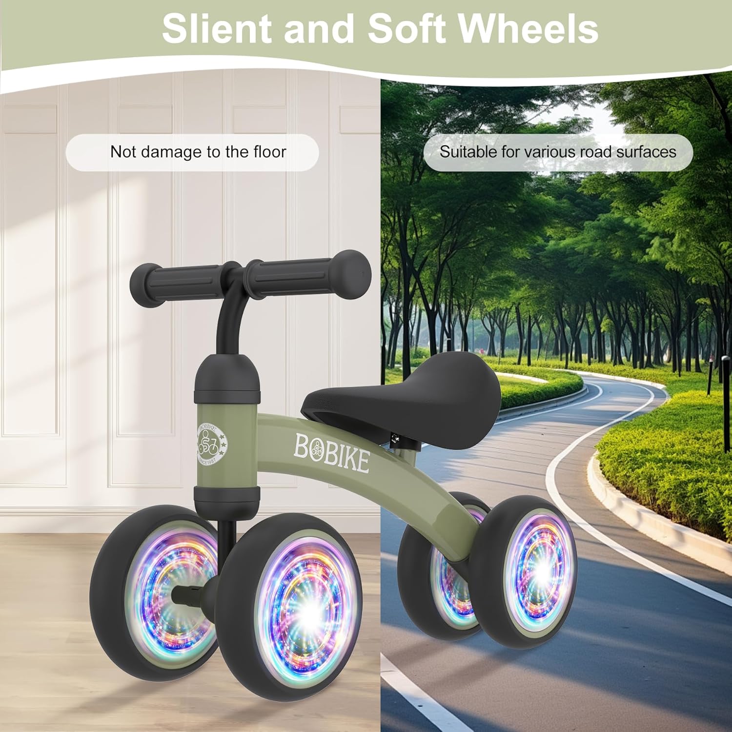 Baby Balance Bike Toys for 12-36 Months Kids Toy Boy and Girls Gifts Toddler Best First Birthday Gift Children Walker No Pedal Infant 4 Wheels Bicycle (Colorful, Deep Green-Light)