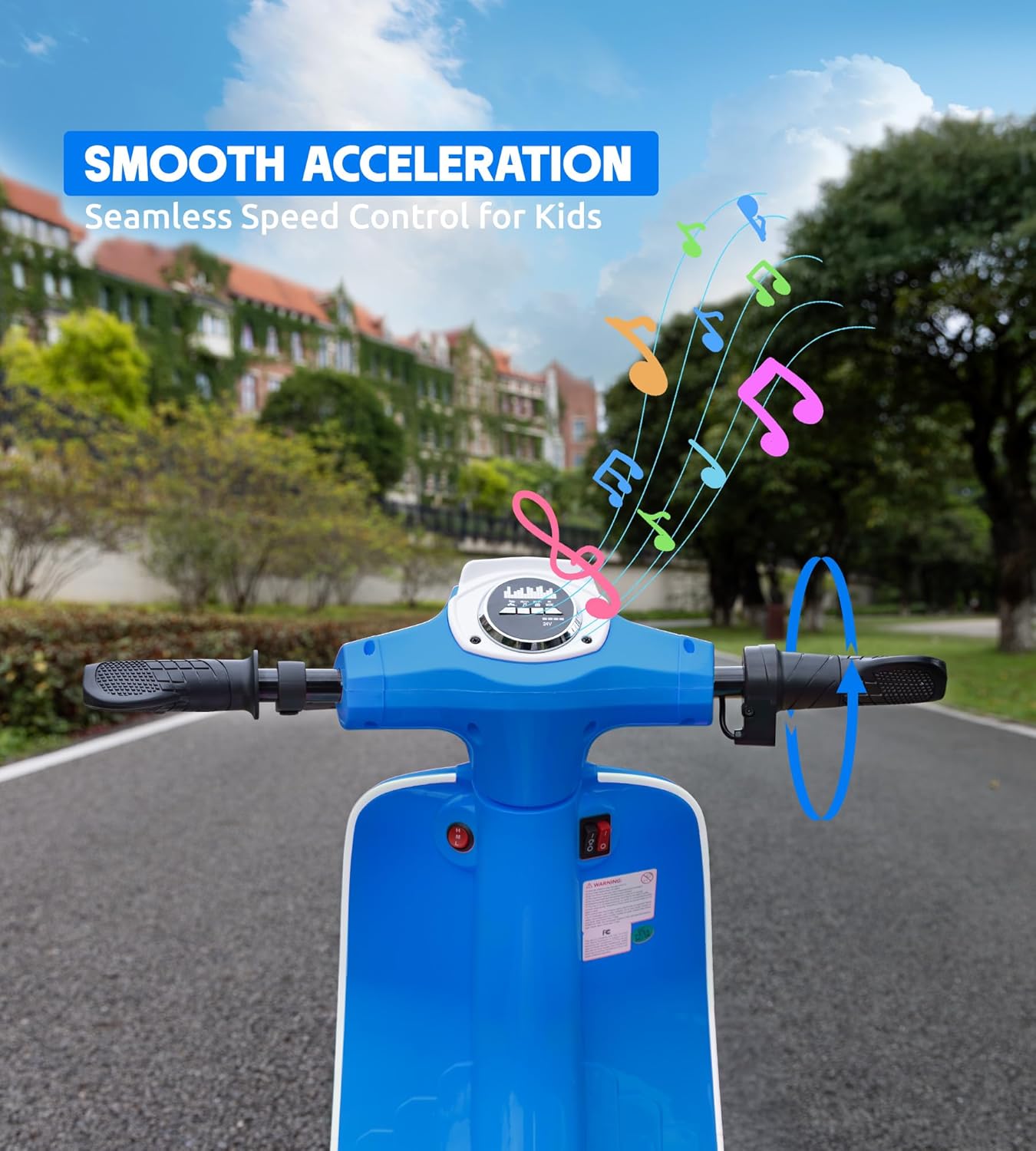 - 【Ride with Joy】Featuring vibrant colors and cool LED headlights, our motorcycle is set to be your kids' cherished toy with its appealing look. Plus, it offers a real-feel ride with start-up engine sounds and a working horn for immersive rides; Built-in Bluetooth, music/stories, adding more fun to the playtime by letting your kids stay entertained or educated during riding;